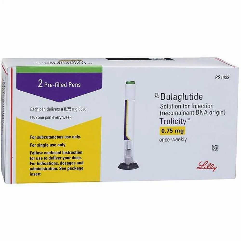 TRULICITY 0.75MG contains dulaglutide is Glucagon-like Peptide-1 Agonists (GLP-1 Agonist) which belongs to the class of medications called incretin mimetics. It is used to lower blood sugar (glucose) in adults with type 2 diabetes mellitus and can help to prevent the heart disease. Type 2 diabetes is a condition in which body does not make enough insulin, and the insulin that your body produces does not work as well as it should. When this happens, sugar (glucose) builds up in blood.