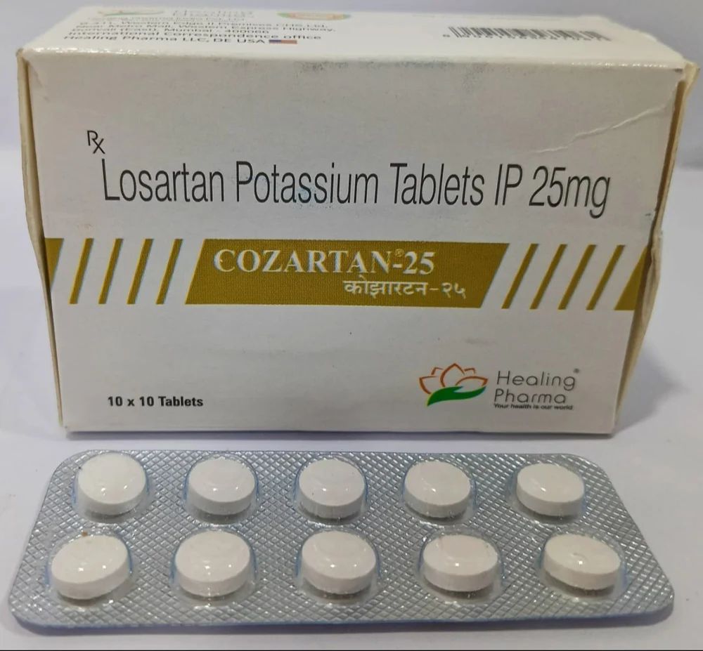 Cozartan 25mg Tablet contains Losartan, which works by blocking the action of certain natural substances that tighten the blood vessels, allowing the blood to flow more smoothly and the heart to pump more efficiently.
