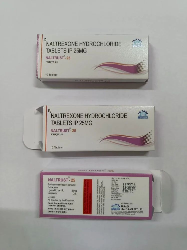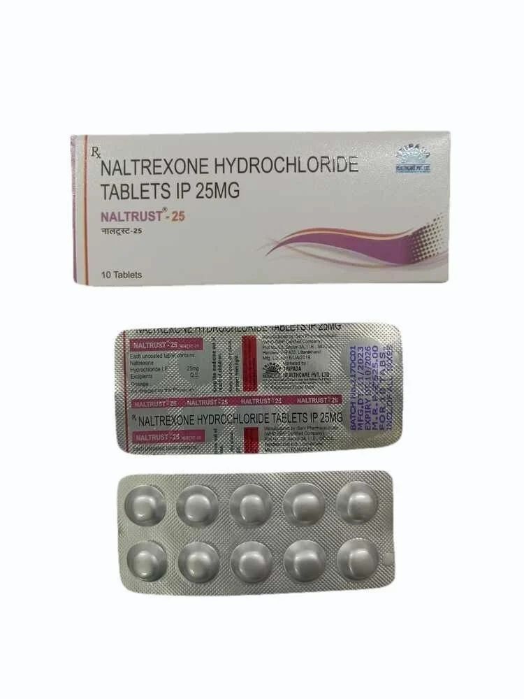 Naltrust-25 Tablet 10’s contains ‘naltrexone’. It works by blocking the effect of opioid receptors and decreasing cravings and urges to use alcohol or opioids. Still, it is used along with counselling and social support to help patients dependent on alcohol abstain from drinking alcoholic drinks.