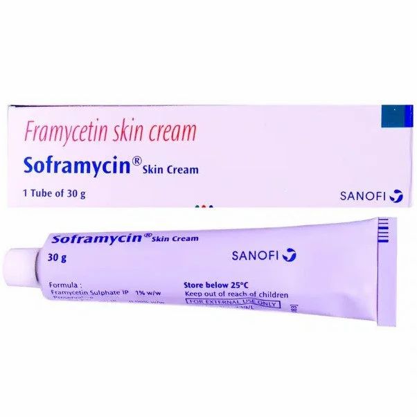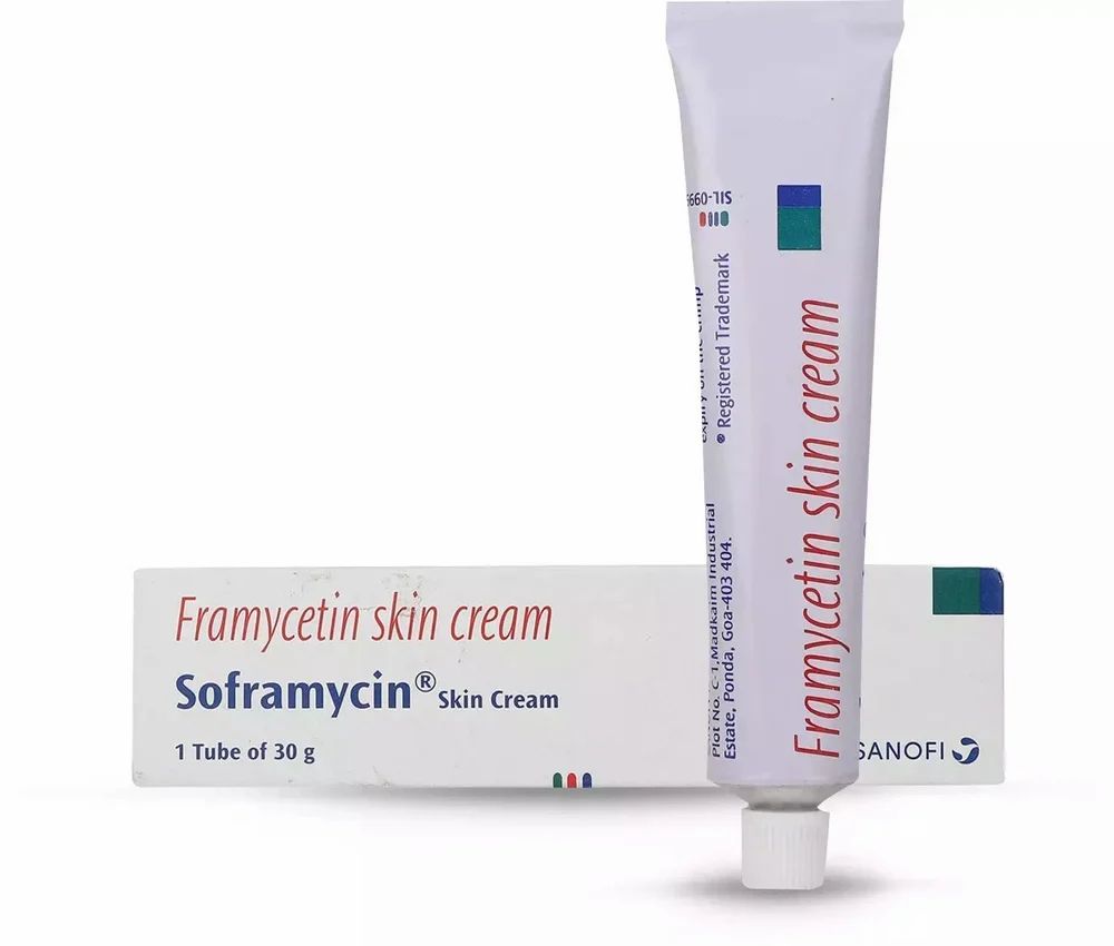 30 gm Soframycin Skin Cream Soframycin 1 Cream contains Framycetin Sulphate 1 W W as an active ingredient Keys benefits uses of Soframycin 1 Cream Effective against gram positive and gram negative bacteria Used for minor cuts lacerations abrasions and for dressings of wounds.