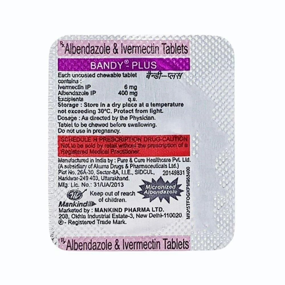 Bandy Chewable Tablet is an antiparasitic medicine, used for the treatment of parasitic worm infections. It works by killing the worms that cause infections and stops the infection from spreading.