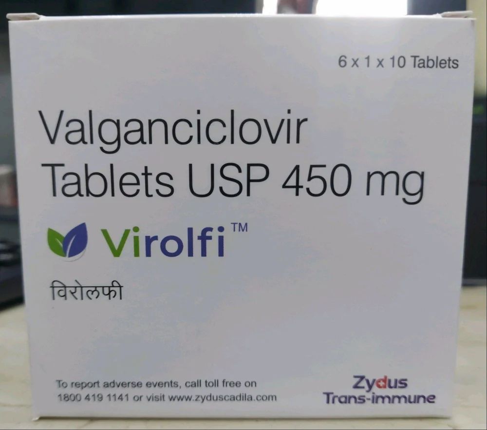 Virolfi 450mg Tablet is used to treat cytomegalovirus (CMV) infection of the retina (retinitis) in adult patients with acquired immunodeficiency syndrome (AIDS). It is also used for the prevention of CMV infection in patients who have received an organ transplant from a CMV-infected donor.