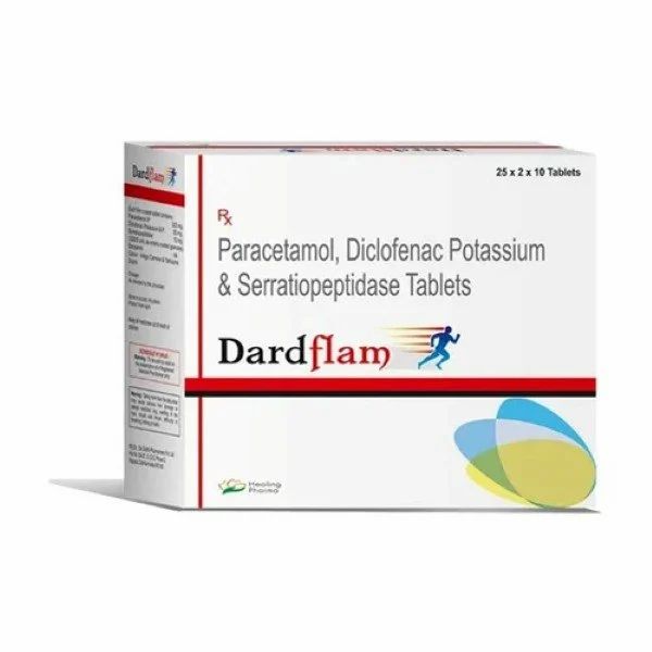 Dardflam Tablet is a pain-relieving medicine. It helps in relieving moderate pain and reducing fever. It is used in various conditions such as muscle ache, back pain, joint pain, menstrual cramps, and toothache.