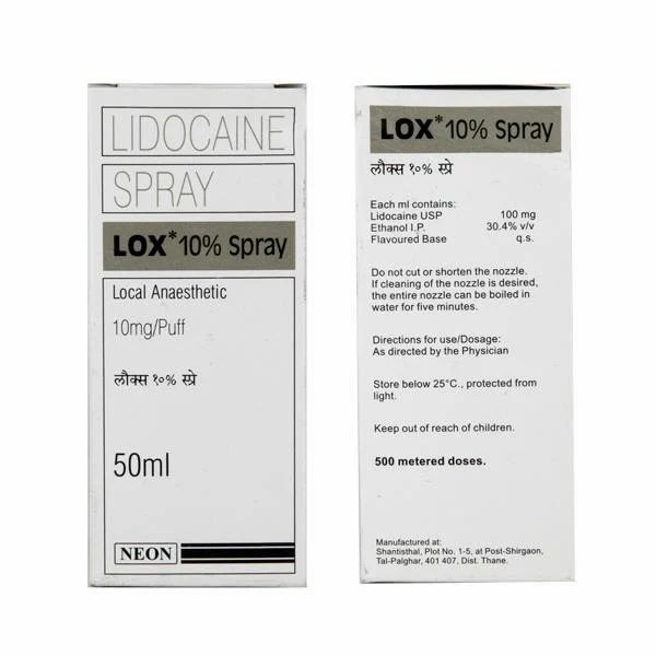 Lox 10% Spray is a local anesthetic used to temporarily numb certain areas of the body. It is used as an anesthetic lubricant to insert instruments in the human body for medical procedures (e.g., catheters). It is also used for the treatment of symptoms of painful inflammation of the urethra and bladder.