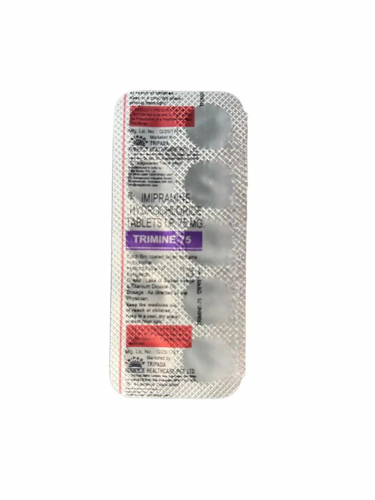 Trimine 75mg Tablet is mainly used to treat depression. It is also used to treat bed wetting in children older than 6 years of age. It works by restoring the chemical imbalance in the brain, thereby enhancing mood