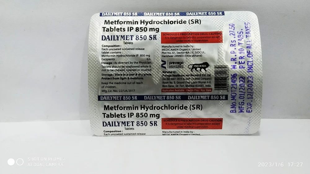 Dailymet 850mg Tablet SR is a medicine used to treat type 2 diabetes mellitus. It helps control blood sugar levels and thus prevent serious complications of diabetes. It is also used to treat a menstruation-related disorder known as Polycystic ovary syndrome (PCOS) in women.