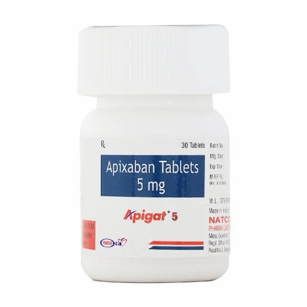 Apigat 5 Tablet is a medicine known as an anticoagulant or blood thinner. It helps prevent and treat blood clots. It prevents and treats clot formation in the veins of your legs, lungs, brain, and heart. It is used to reduce the risk of stroke and heart attack.