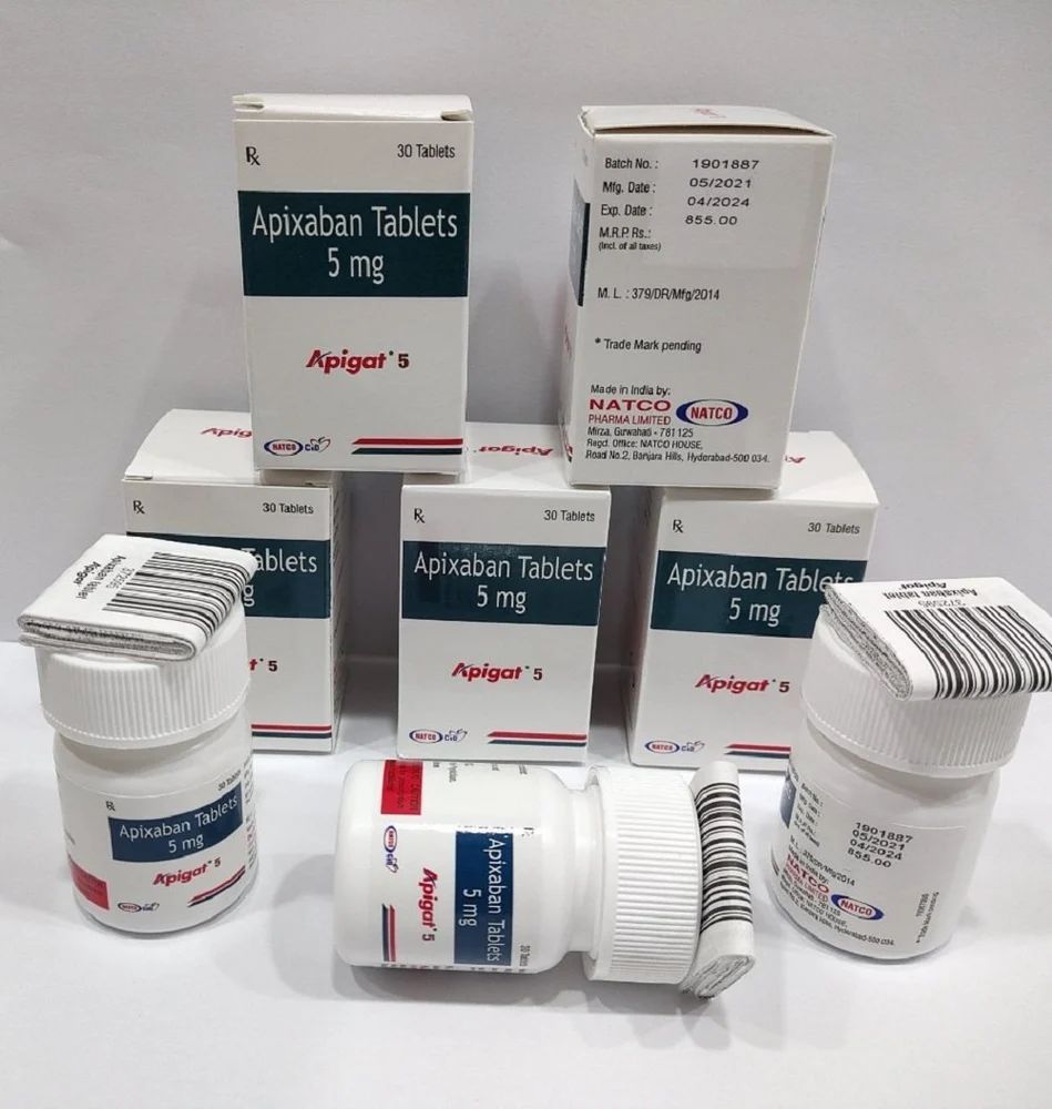 Apigat 5 Tablet is a medicine known as an anticoagulant or blood thinner. It helps prevent and treat blood clots. It prevents and treats clot formation in the veins of your legs, lungs, brain, and heart. It is used to reduce the risk of stroke and heart attack.