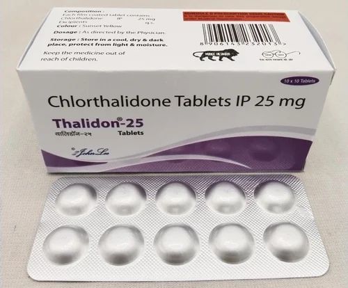 Thalidon 25 is a diuretic (water pill) medicine used to treat hypertension (high blood pressure). This medicine reduces excess fluid levels in the body and treats edema (fluid overload) associated with heart, liver, kidney, or lung disease. Thalidon 25 makes you lose excess water through urine. It may be used alone or in combination with other medicines. This medicine should be taken only during day time to avoid frequent urination at night. You must take this medicine in the dose and duration as advised by the doctor and never stop it abruptly without consulting the doctor. Most people with high blood pressure do not feel ill, but if you stop taking this medicine, your condition could get worse. This may lead to your blood pressure rising up again and increase your risk of heart disease and stroke. It is important to have your blood pressure checked regularly. This medicine is only one part of a treatment program which should also include a healthy diet, regular exercise, smoking cessation, moderation of alcohol intake and weight reduction. You can eat normally while taking this medicine, but try to reduce your salt intake. Common side effects of this medicine include headache, nausea, and dizziness. Consult your doctor if these side effects bother you. Before taking this medicine, its better to let your doctor know if you are suffering from any kidney or liver disease. Also, pregnant women and breastfeeding mothers should consult doctor before taking it. You must inform doctor about all the other medicines that you are taking apart from this medicine.Request