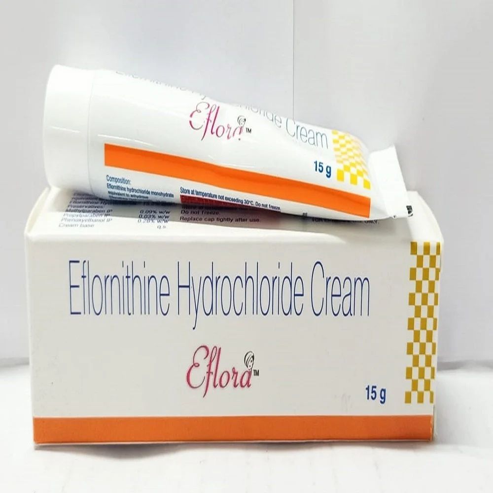 Eflora Cream is a medicine used for the treatment of excessive facial hair growth (facial hirsutism). It slows down the growth of unwanted hair around the lips or under the chin.