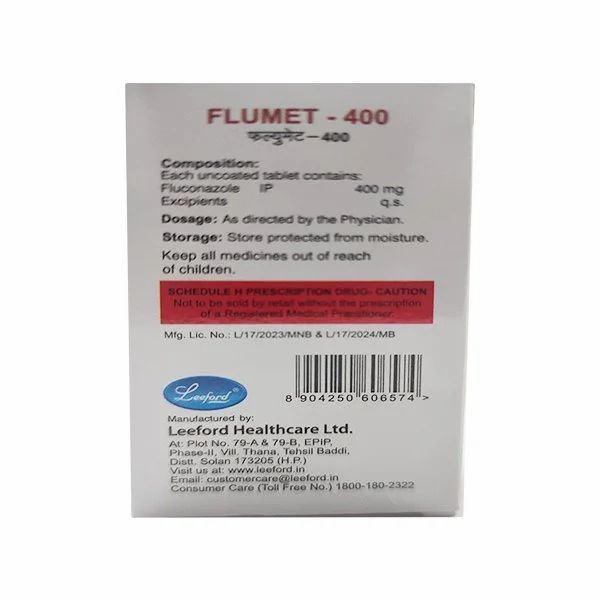 Flumet 400mg Tablet is used to treat fungal infections of the mouth, throat, vagina, and other parts of the body including fingernails and toenails. It kills fungi by destroying the fungal cell membrane thereby stopping the growth of fungi