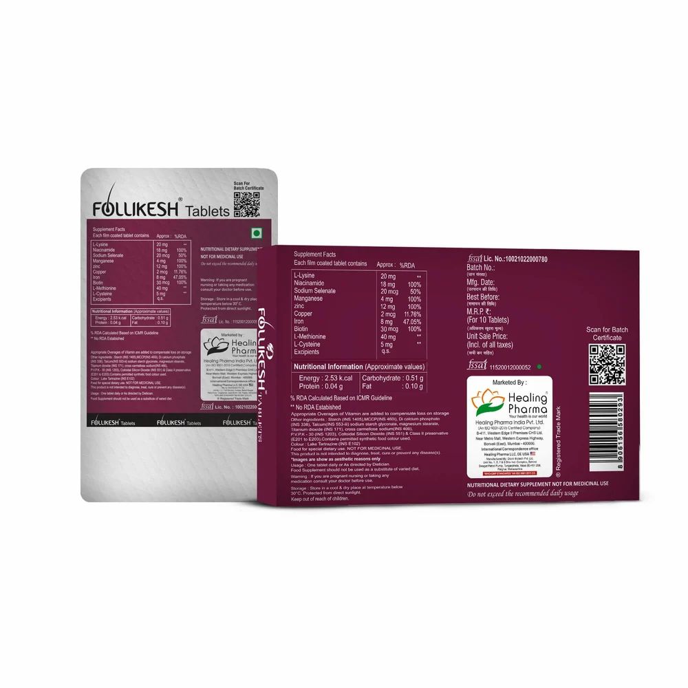 Follikesh Tablet is a nutritional supplement which helps in strengthening the hair and prevents hair loss. Enriched with biotin and essential nutrients