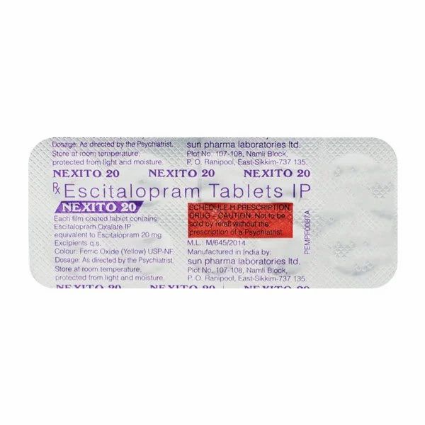Medicine Name NEXITO 20 Escitalopram Tablets IP