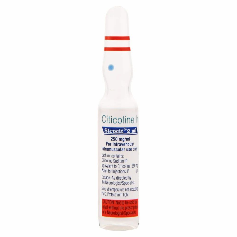 Strocit Injection is a medicine used in the treatment of stroke, head injury, Alzheimer’s disease and memory loss (dementia) in Parkinson’s disease. It protects the nerve cells in the brain from damage and also helps to repair the damaged nerve cells. Therefore, it improves learning and memory.