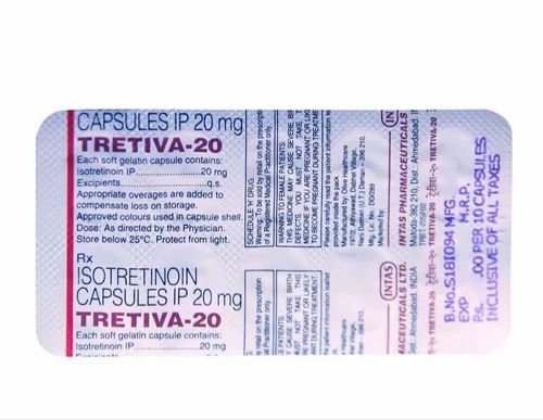Tretiva 20 Capsule is a derivative of vitamin A. It acts on glands (sebaceous) to reduce the production of a natural substance (sebum) that causes acne. Also, the controlled sebum production kills acne-causing bacteria. It also works as an anti-inflammatory to decrease inflammation (redness and swelling).