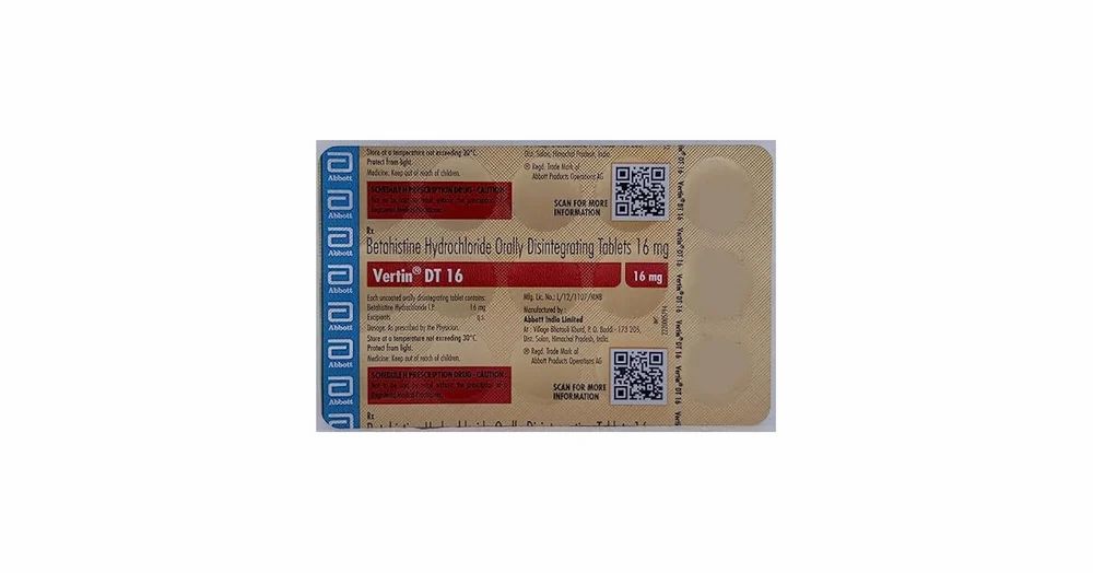 Vertin DT 16 Tablet is used to prevent and treat a disorder of the inner ear known as Ménière’s disease. The symptoms include dizziness (vertigo), ringing in the ears (tinnitus), and loss of hearing, probably caused by fluid in the ear. This medicine helps relieve the symptoms by reducing the amount of fluid.