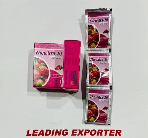 Zhewitra oral jelly comes in sachets and is a fast acting medicine.Zhewitra Oral Jelly is for the men who want a rock hard erection which lasts long. Zhewitra is prescribed to treat erectile dysfunction in males. It have Vardenafil (20mg) which is a PDE5 inhibitor. Its PDE5 inhibiting action releases more of cGMP in the Corpus Cavernosum of a private part. An increased level of cGMP relaxes the smooth muscles of the arteries and improves blood flow. The recommended dose of Zhewitra Oral Jelly contains 20 mg of Vardenafil, it is available in a pack of sachet. Take it an hour before intercourse. In case of adverse effects it is recommended to reduce the dose to 5 mg daily. Do not exceed the recommended dose.